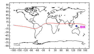 Geomagnetic (1995) Latitude = -9.73 Longitude = 207.39 L = 1.05