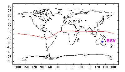 Geomagnetic (1995) Latitude = -36.10 Longitude = 213.08 L = 1.56
