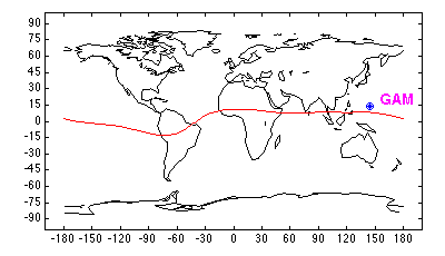 Geomagnetic (1995) Latitude = 5.61 Longitude = 215.55 L = 1.03