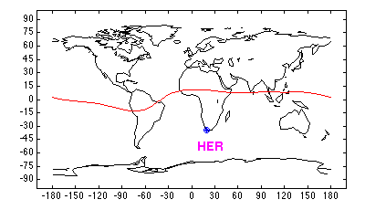Geomagnetic (1995) Latitude = -42.05 Longitude = 82.30 L = 1.84