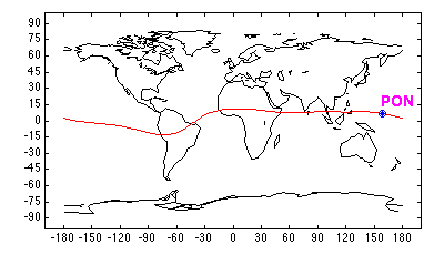 Geomagnetic (1995) Latitude = 0.08 Longitude = 229.19 L = 1.02