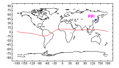 Geomagnetic (1995) Latitude = 36.27 Longitude = 203.74 L = 1.56