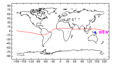 Geomagnetic (1995) Latitude = -12.12 Longitude = 215.37 L = 1.06