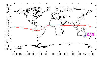 Geomagnetic (1995) Latitude = -45.72 Longitude = 226.29 L = 2.08