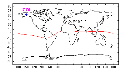 Geomagnetic (1995) Latitude = 64.74 Longitude = 263.48 L = 5.58