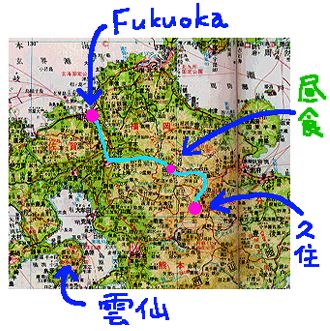 福岡の九大に集合し、高速を通って日田へ。 そこからぐんぐん高度をかせいで、久住山のふもと八丁原が会場でした。 往路のバスは用意したのに復路は現地解散でしたが、 困った方はいませんでしたか?
